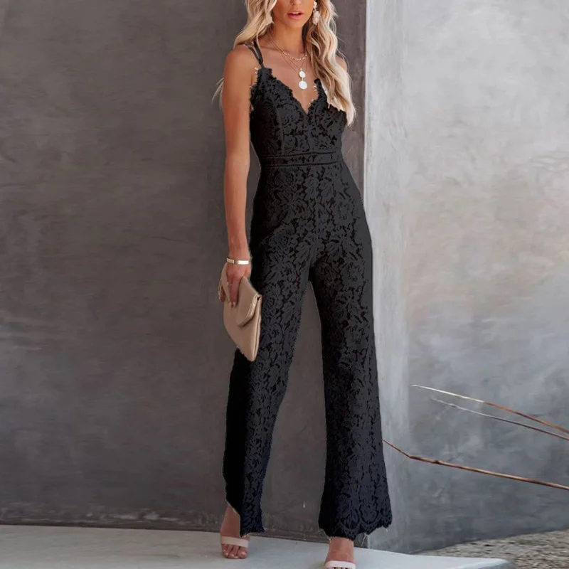 Elegant Office Lady Jumpsuit Sexy Crochet Lace Embroidery Autumn Playsuit Women Summer Sleeveless Strap Party Jumpsuits Overalls