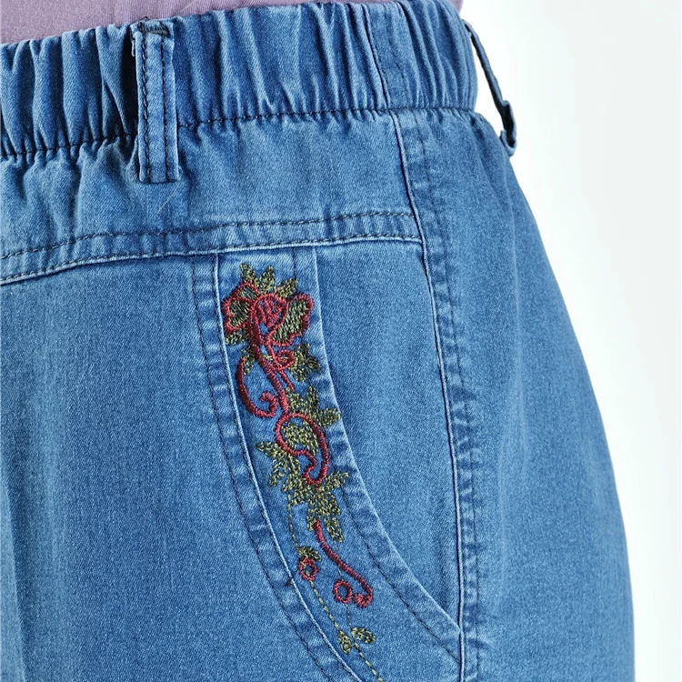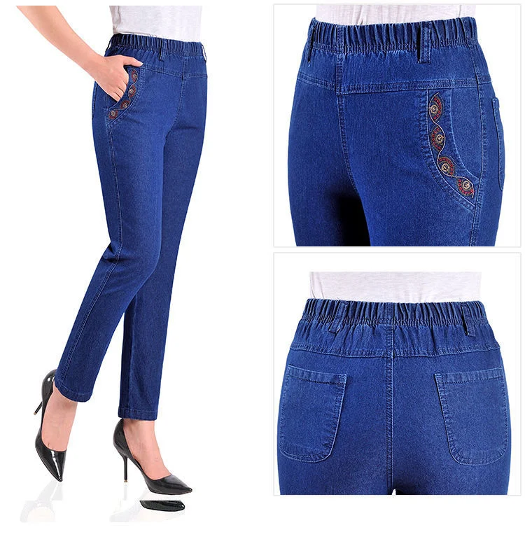 Mom Jeans Denim Trousers Womens Jeans Baggy High Waist Casual Embroidery
