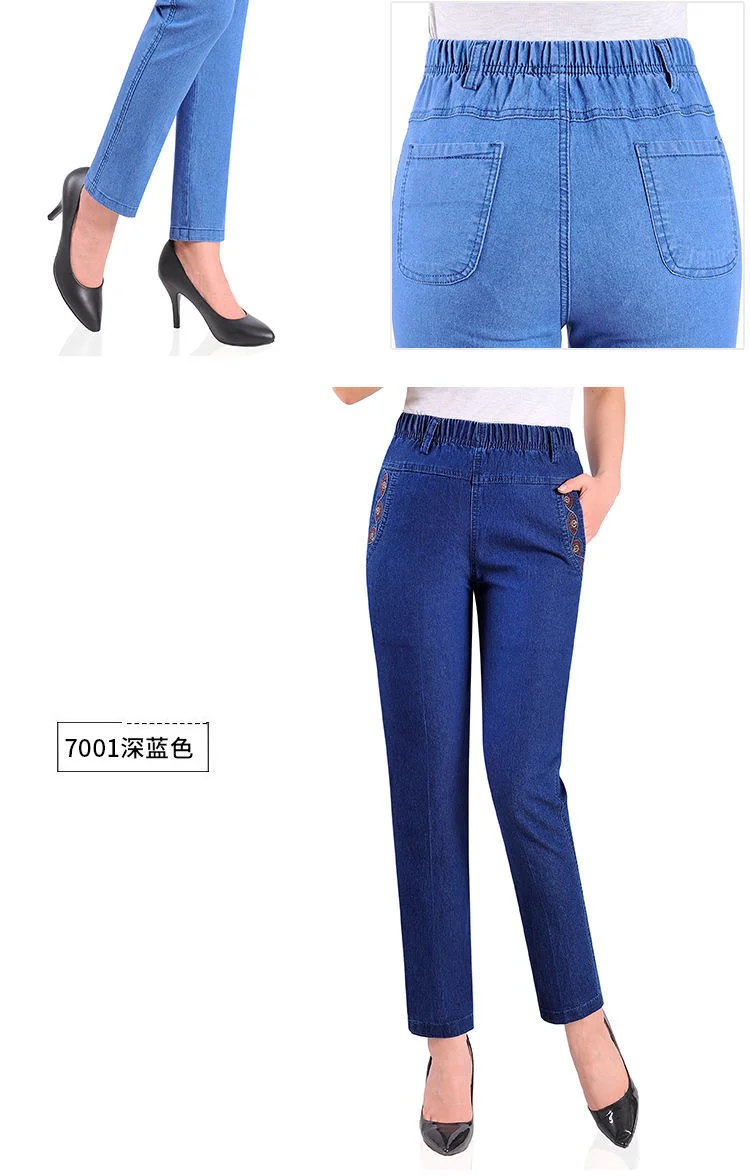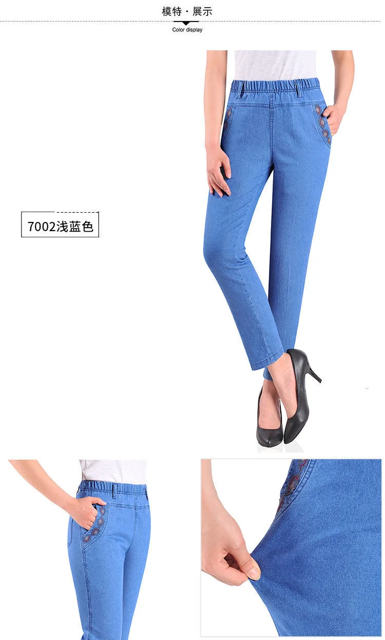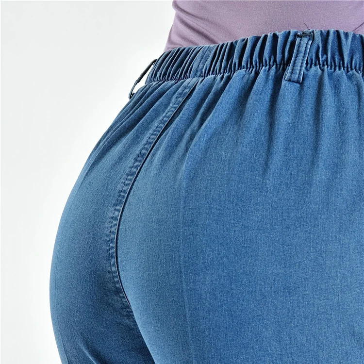 Casual Jeans Capris Female Summer Women Stretch Thin Calf-Length Denim Pants High Waist Plus Size Jean For Woman