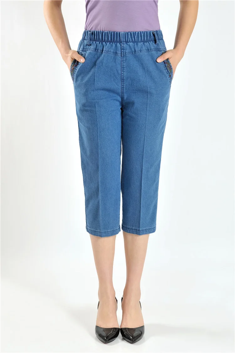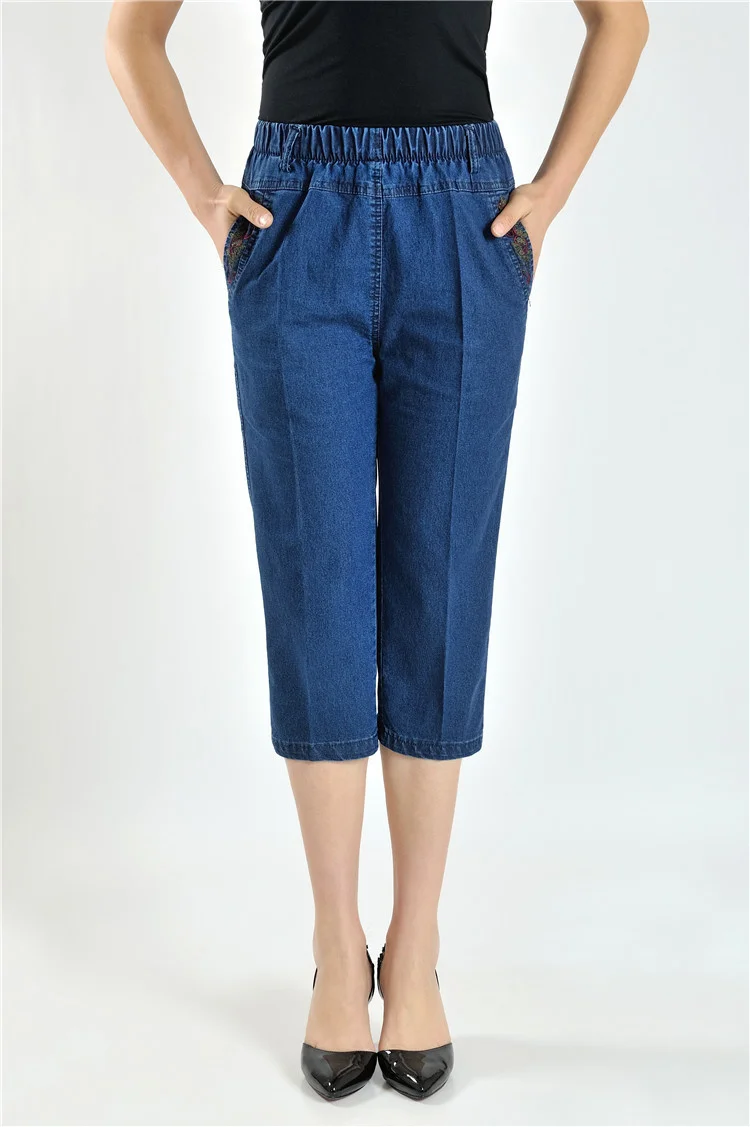 denim jeans womens:: Female Stretch Knee Length Casual straight Jeans