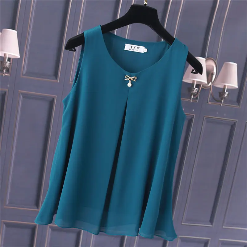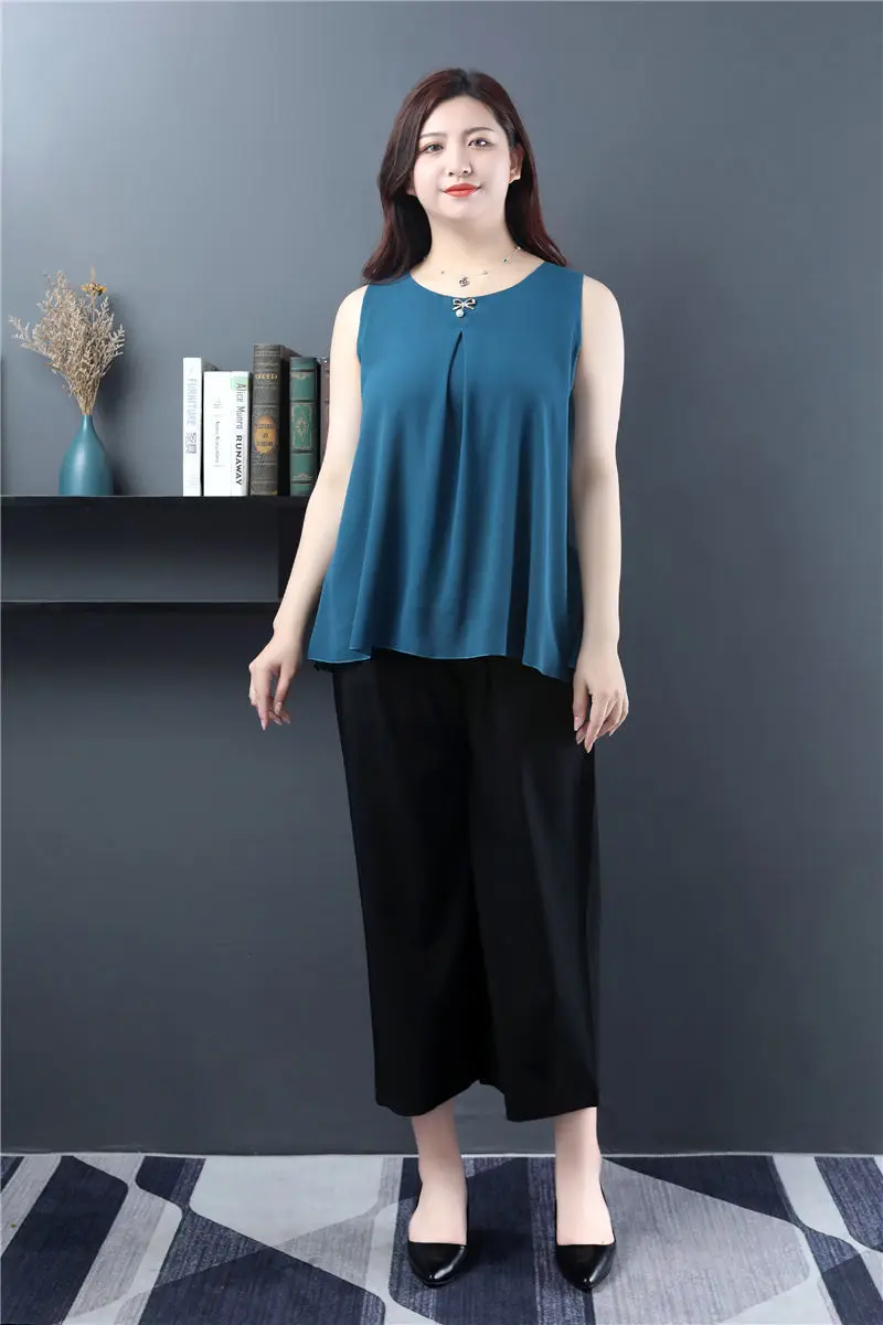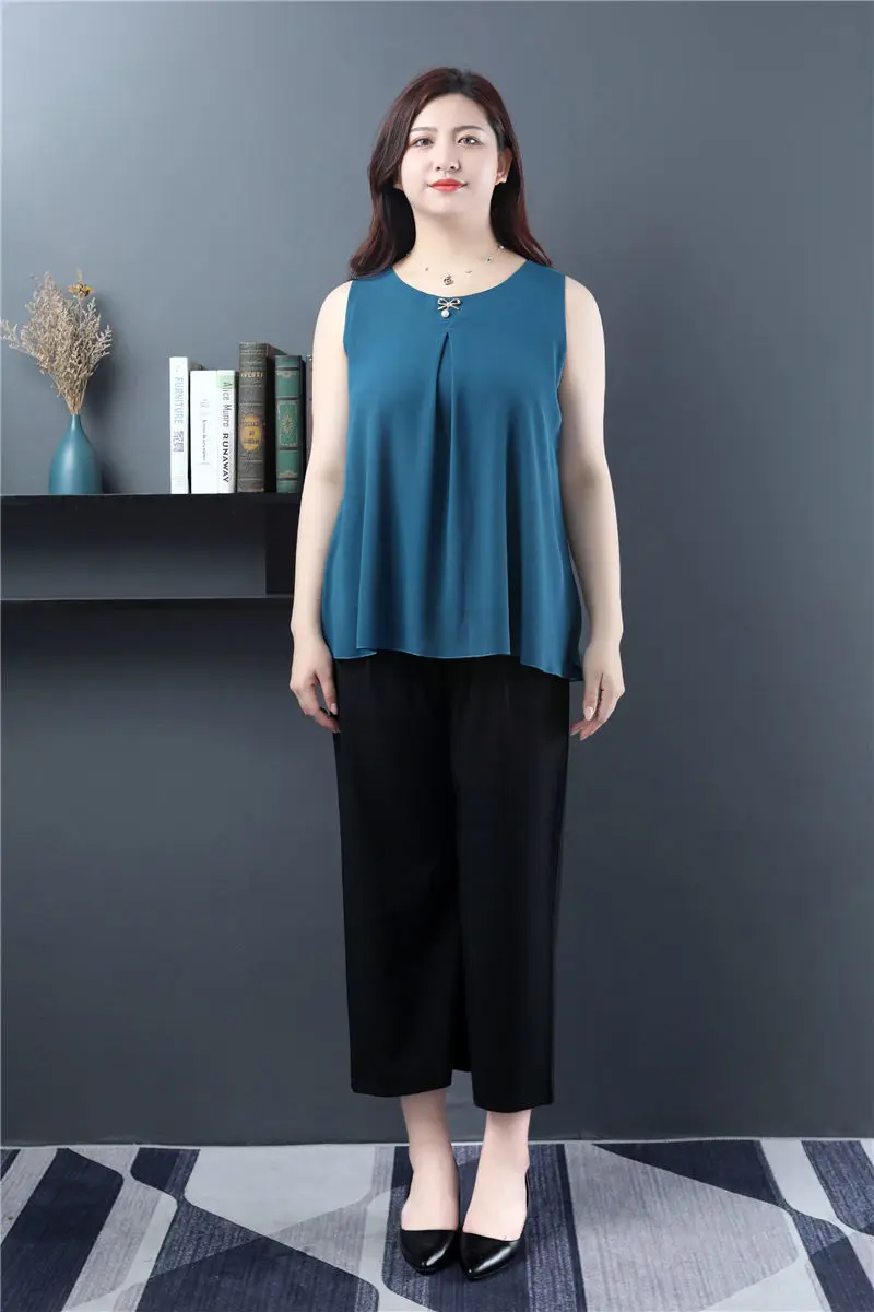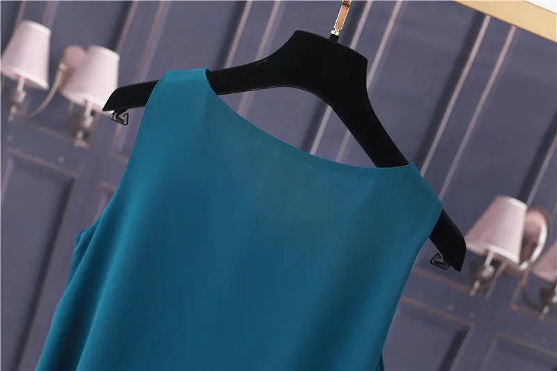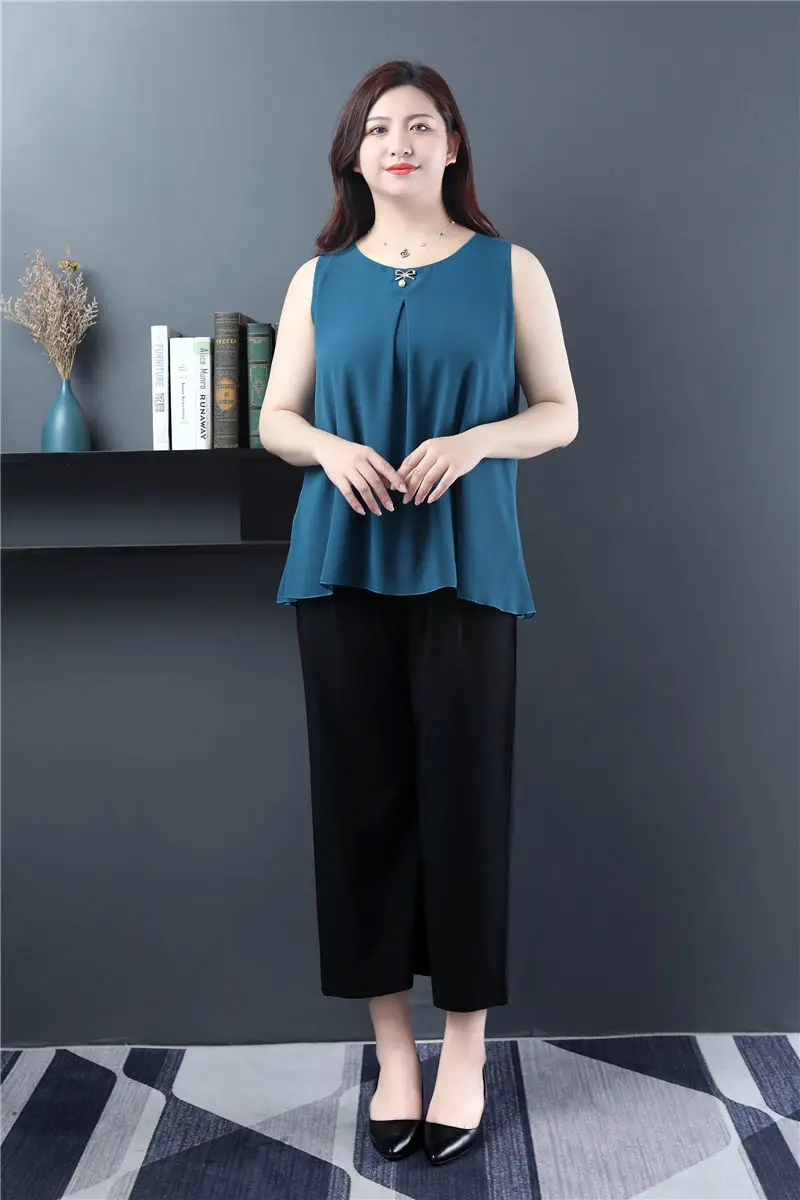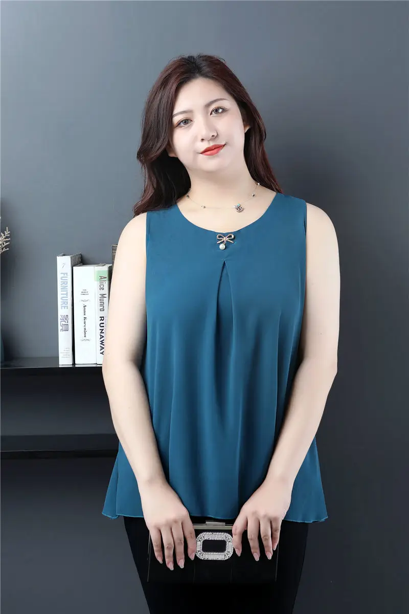Obesity Women Chiffon Shirt 2022 New Summer Sleeveless O-neck Blouse Casual Solid White/Red Loose Oversized Female Tops