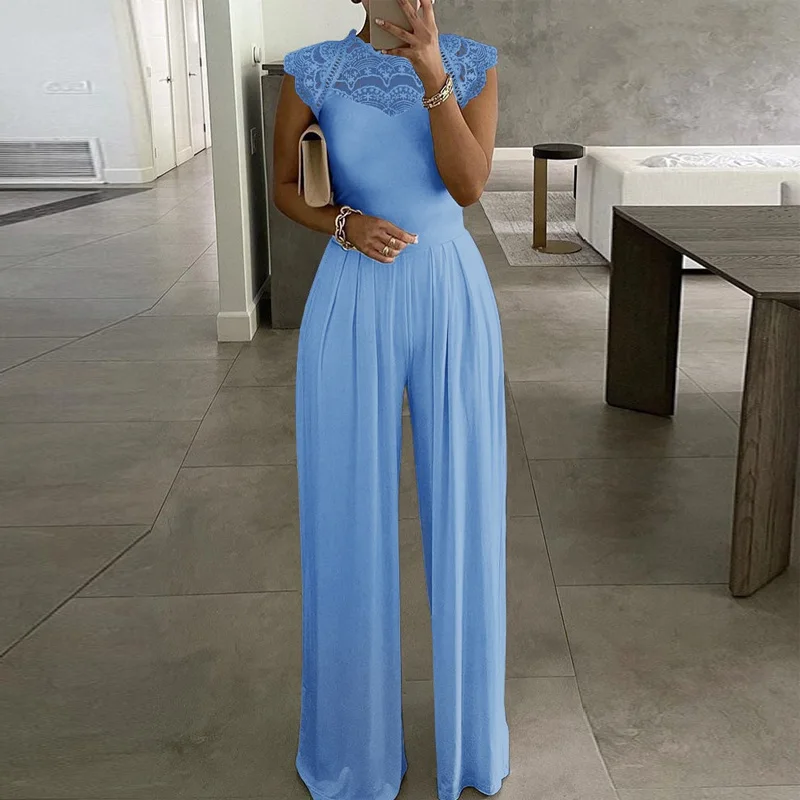 Sexy Hollow Out Sleeveless Women Jumpsuit 2021 Summer Lady Solid Office Lady Top Fashion Embroidery Lace Loose Wide Leg Romper